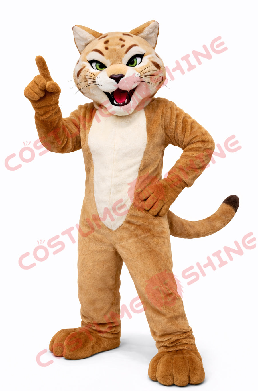 Adult Wildcat Mascot Costume Brown Plush Pointing Full Body