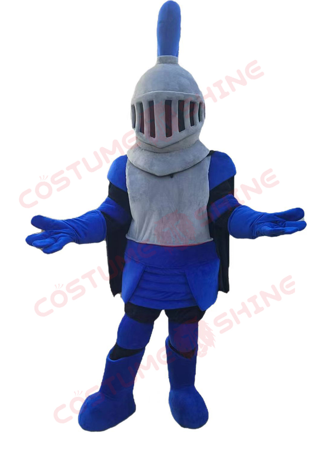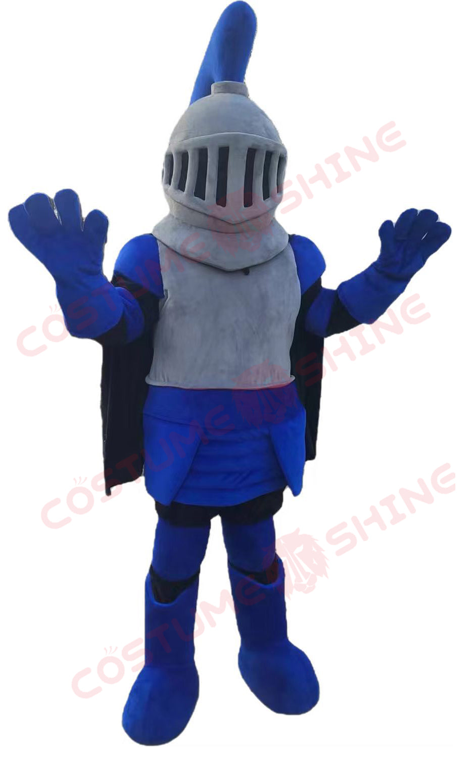 Blue Knight Mascot Costume with Silver Helmet – Medieval Warrior Character