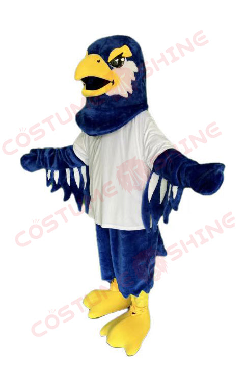 Blue and Yellow Bird Mascot Costume with Wings and White Shirt