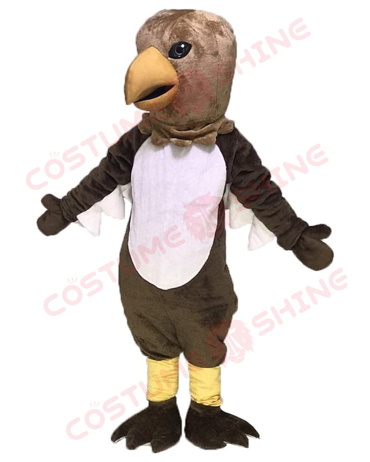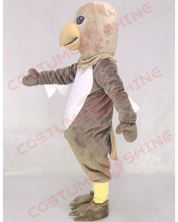 Brown Hawk Mascot Costume with White Belly and Yellow Legs