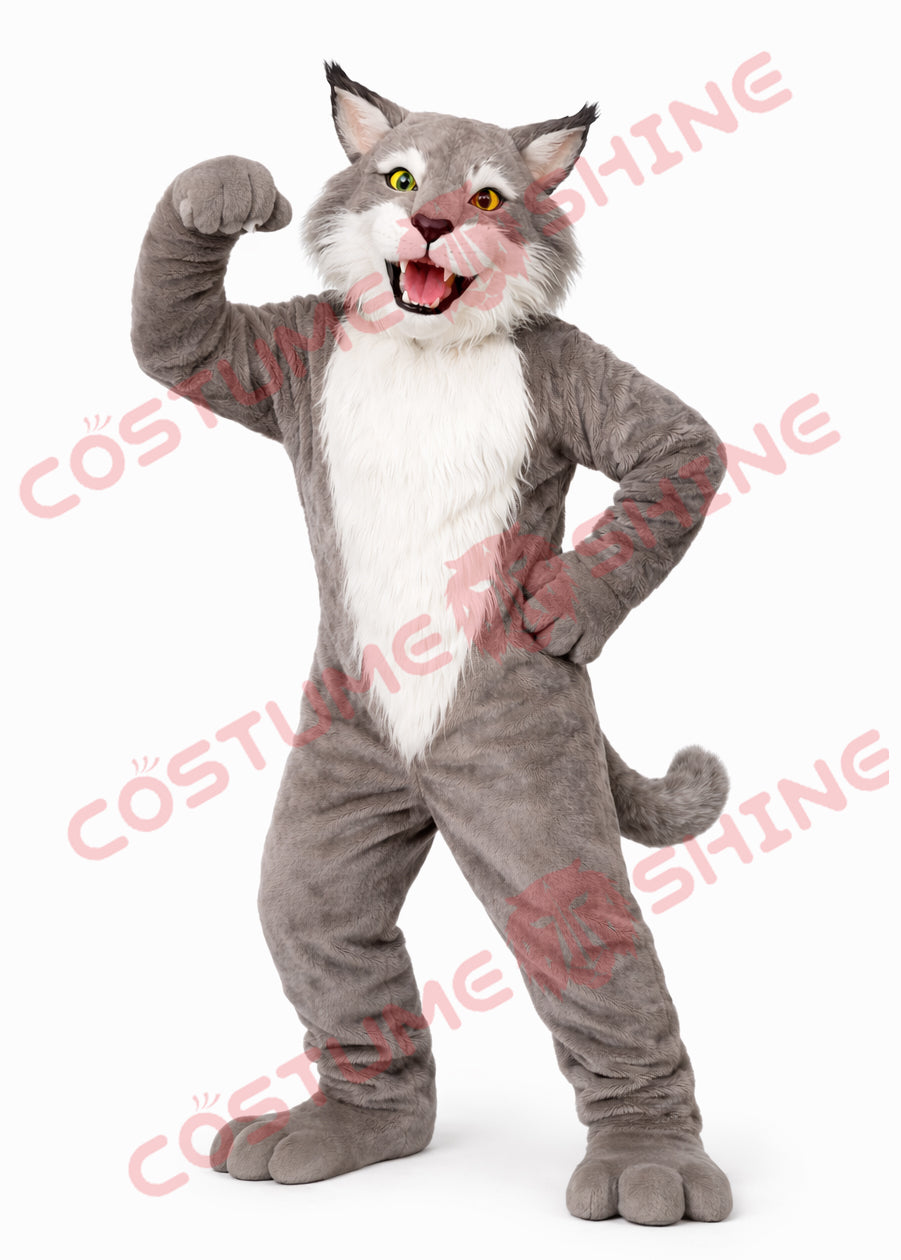 Gray Wildcat Mascot Costume Adult – Plush Full Body Feline Suit