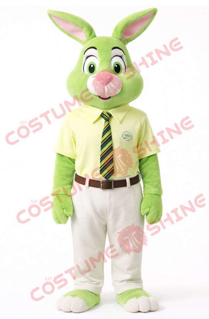 Green Rabbit Mascot Costume Adult Shirt Tie Plush Suit