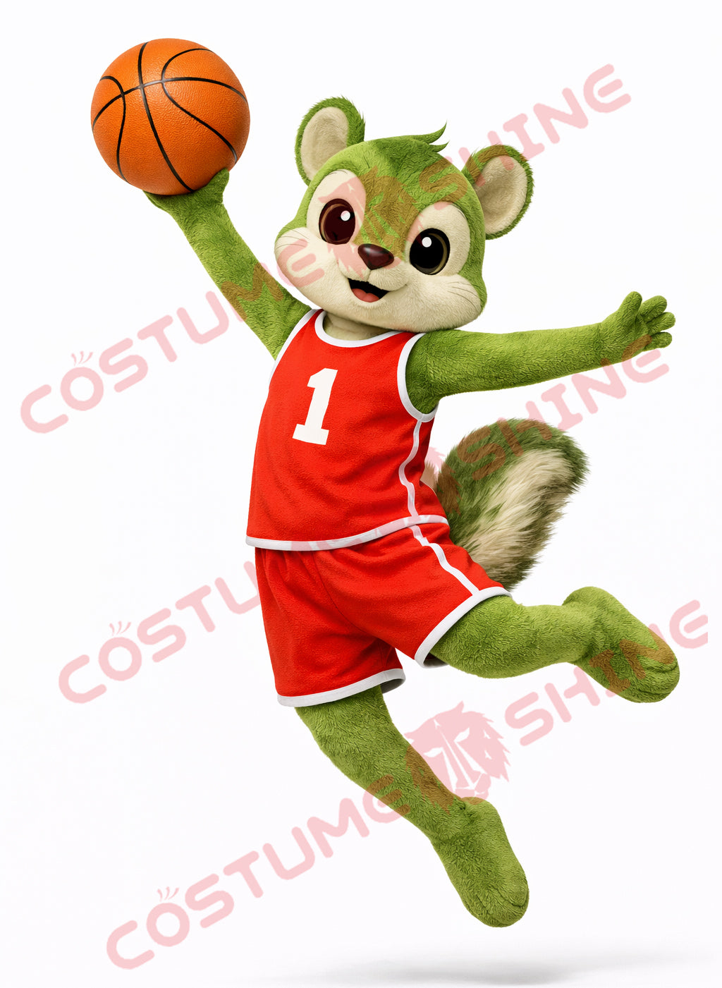 Green Squirrel Mascot Costume Adult Red Basketball Uniform
