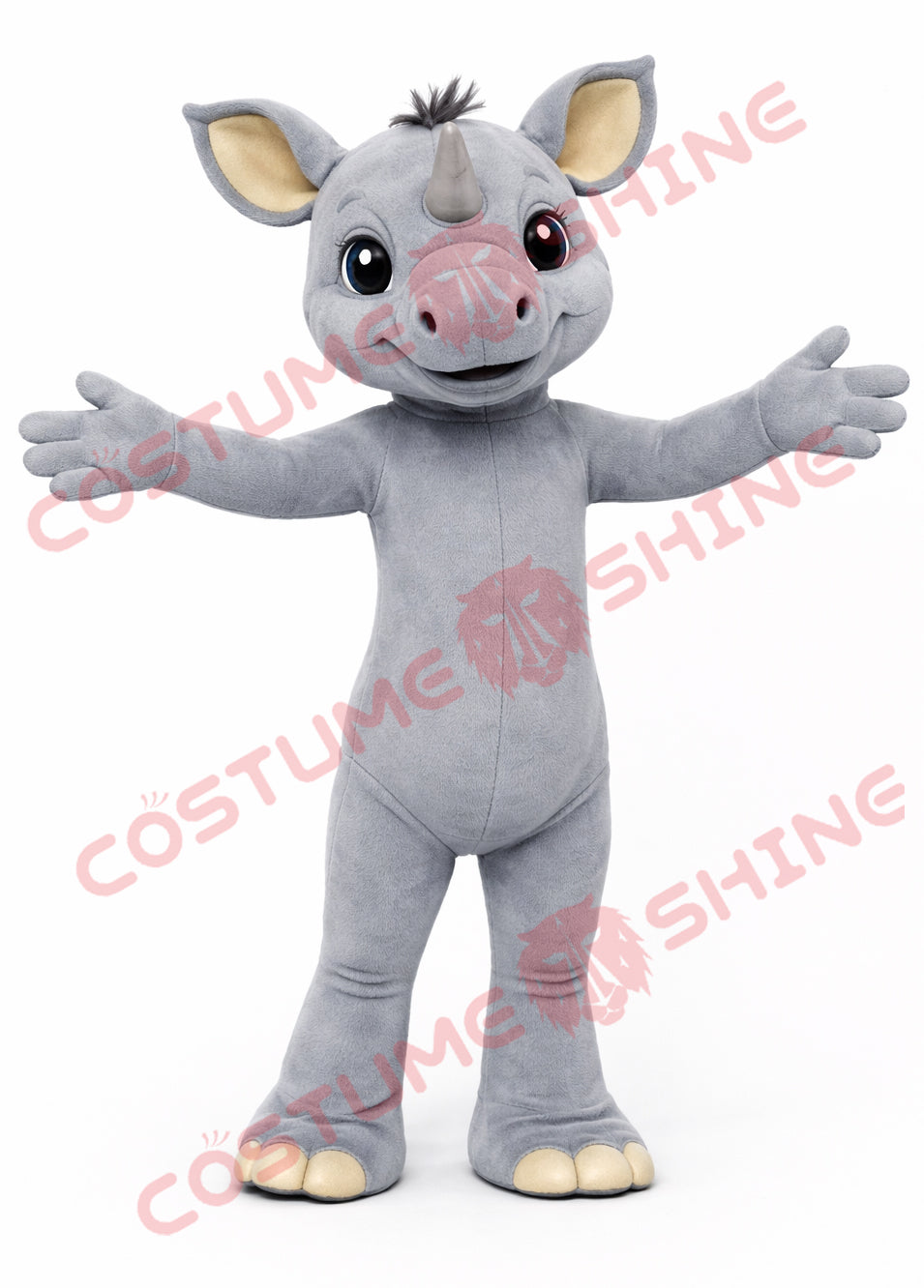 Light Gray Rhino Mascot Costume for Adults – Plush Mascot Suit