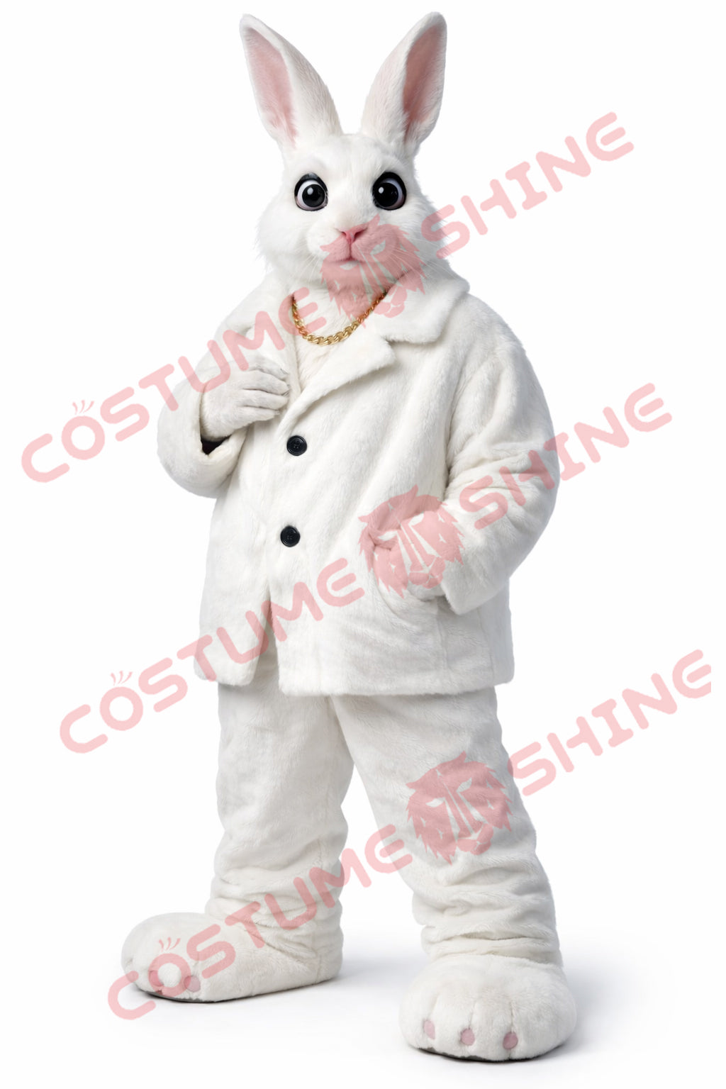 Adult White Rabbit Mascot Costume Luxury White Coat Style