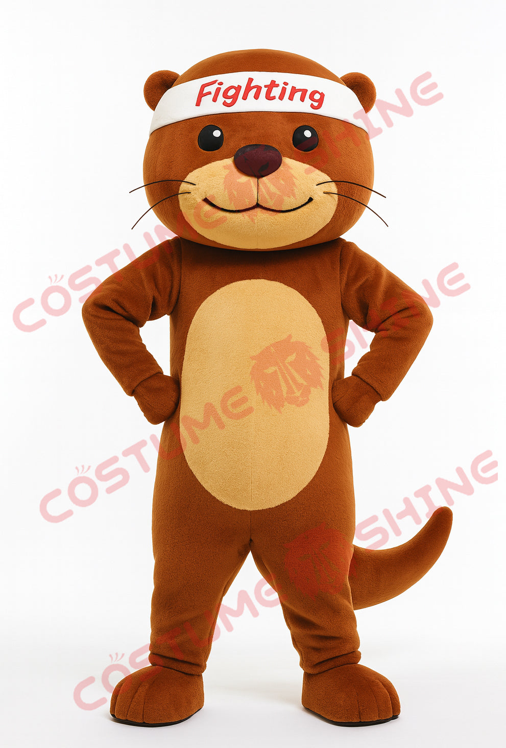 Brown Otter Mascot Costume with Fighting Headband – Hands-on-Hips Pose