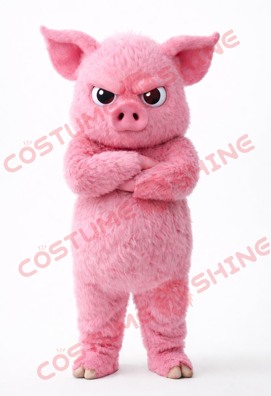 Pink Pig Mascot Costume Angry Style Full Body Plush Suit