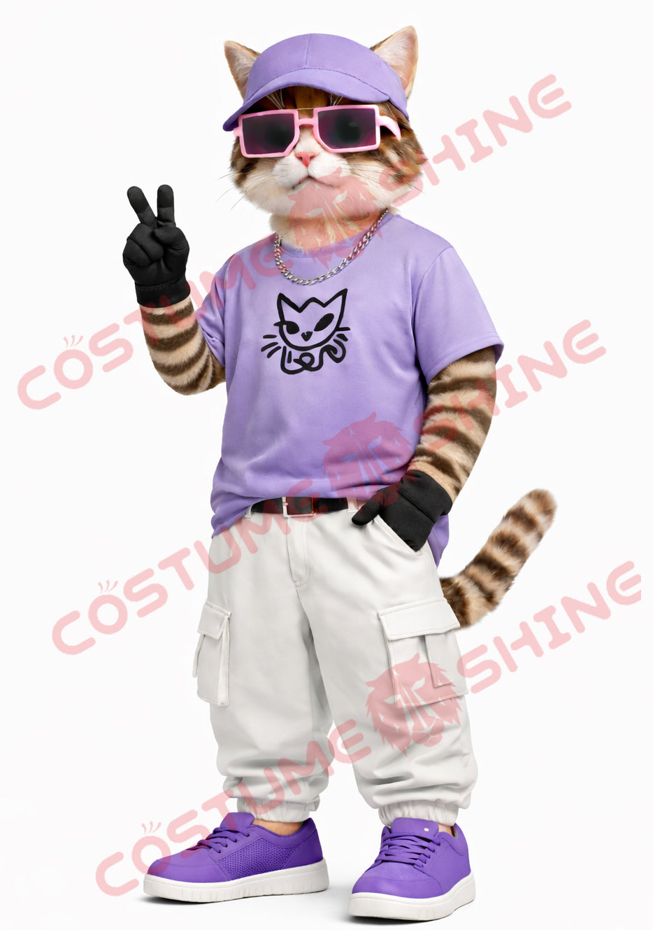 Purple Street Style Cat Mascot Costume Adult Hip Hop Character