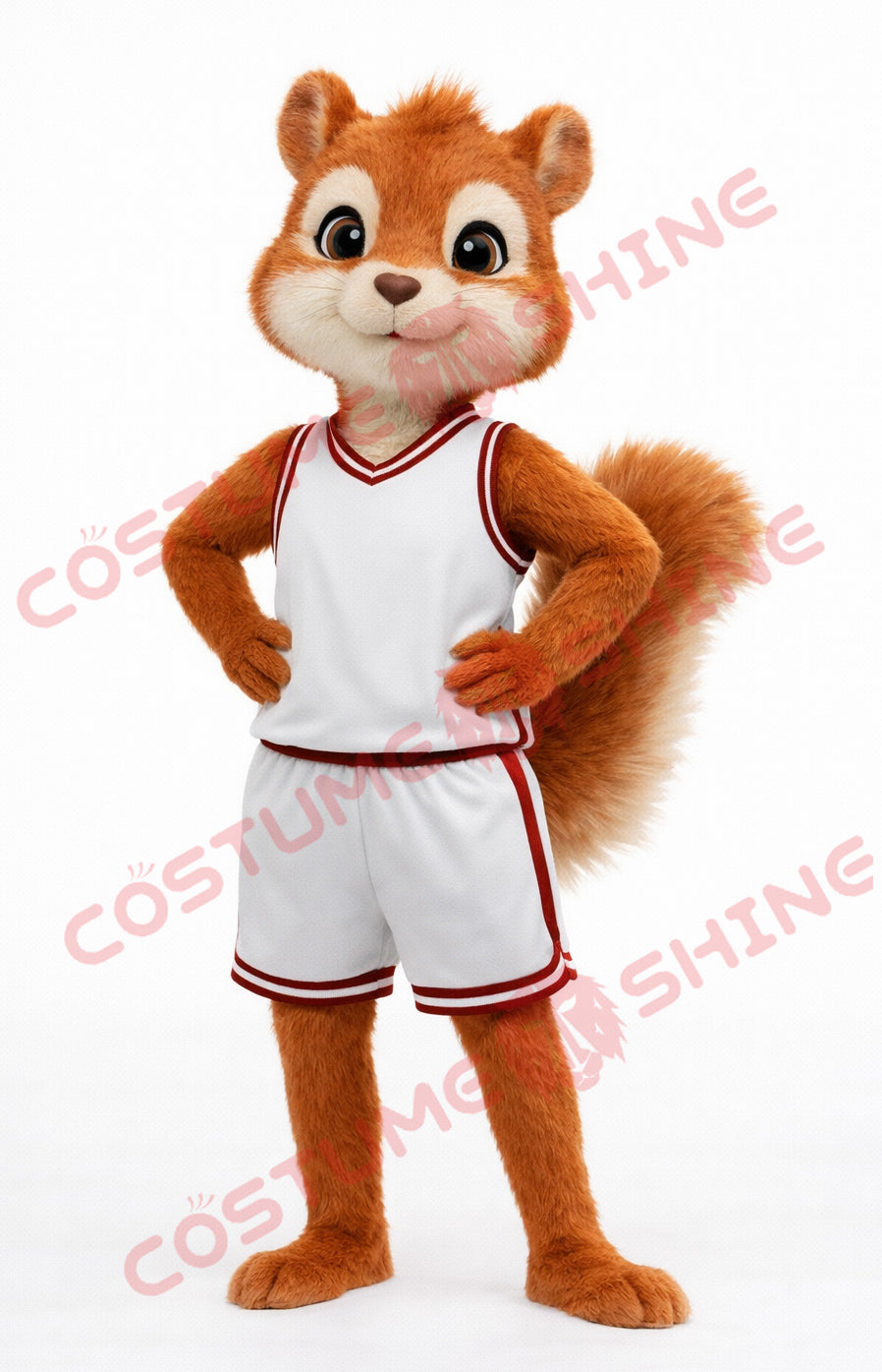 Red Squirrel Mascot Costume Adult White Basketball Uniform