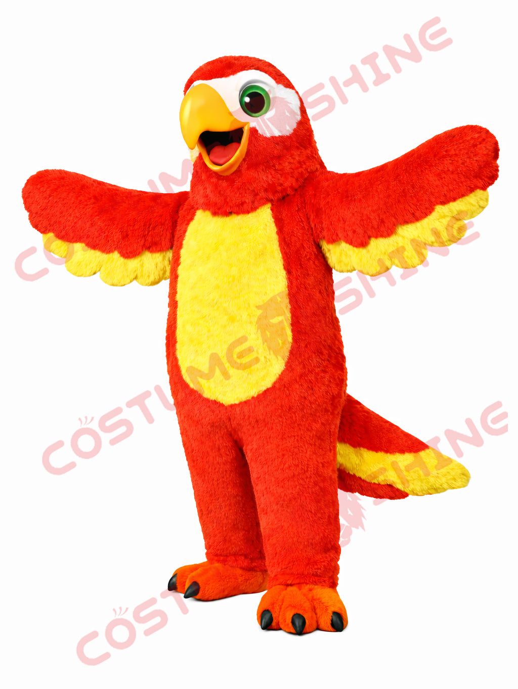 Red and Yellow Parrot Mascot Costume Adult Plush with Spread Wings