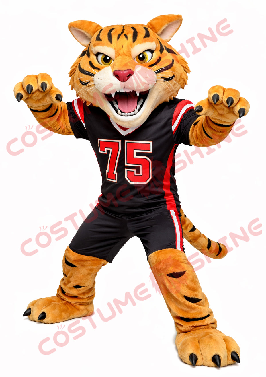 Wildcat Mascot Costume Adult – Black Football Uniform Full Body