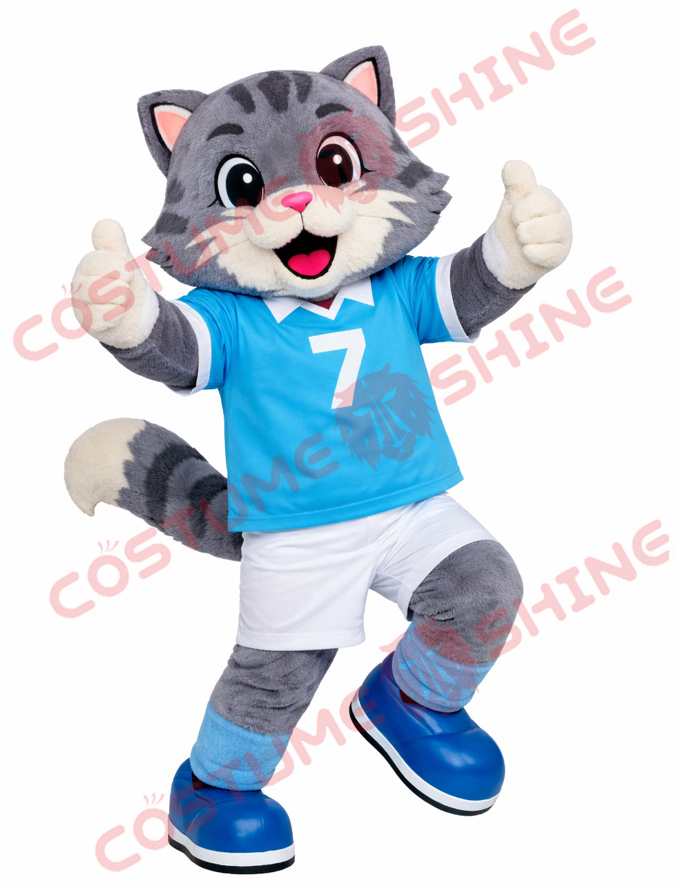 Blue Sports Cat Mascot Costume Adult Number 7 Team Character