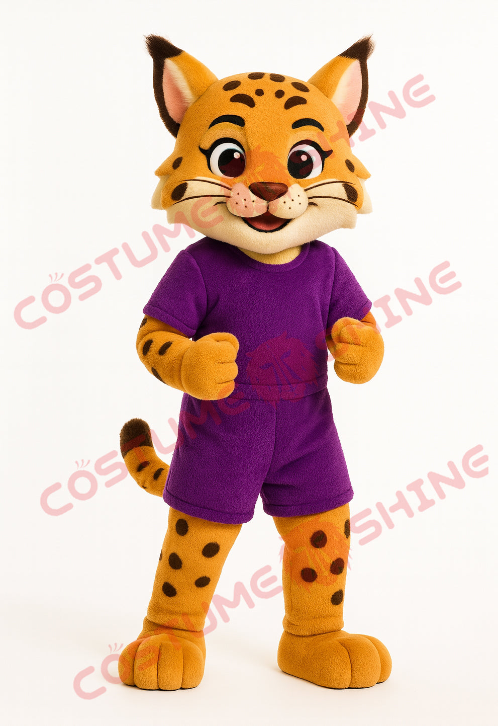 Cute Cougar Mascot Costume in Purple Outfit – Full Plush Suit